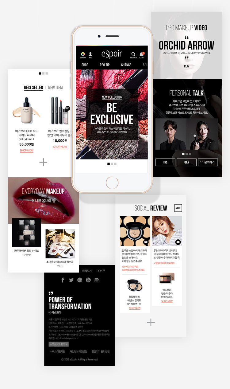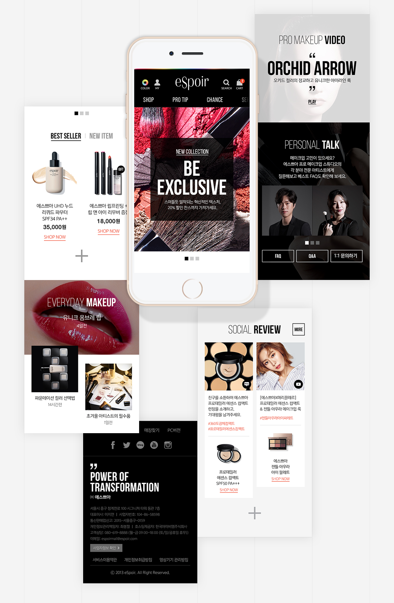 웹,모바일,태블릿 등 모든 디지털기기 사용성에 최적화된 전략적인 UI와 UX를 설계하여 구축합니다.